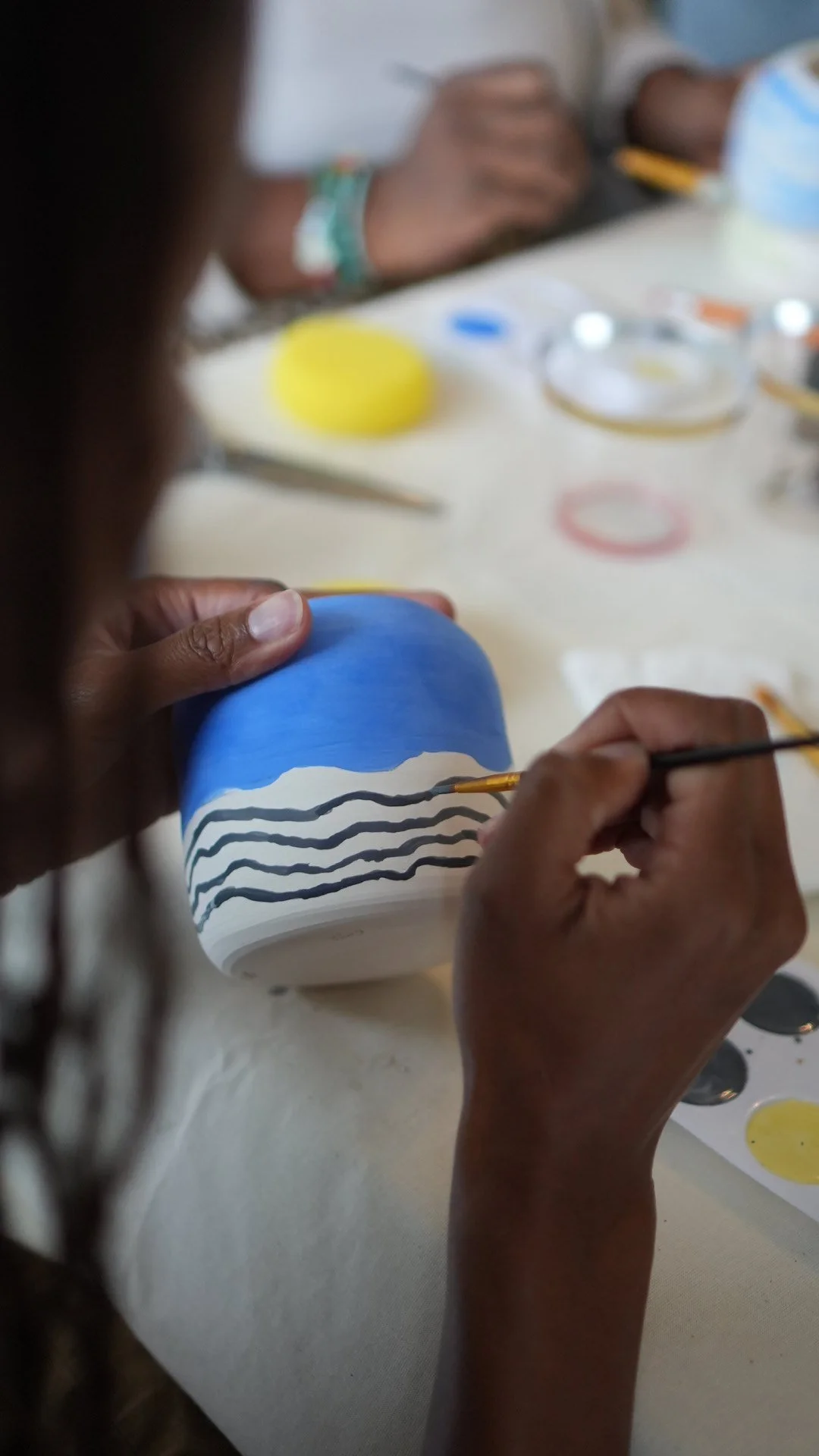 Each month centers around one intentional object; a planter or an incense holder or vase, that you build in session one and paint in session two. Materials, food, drinks, ambience, and your finished fired piece shipped directly to your door. All included.